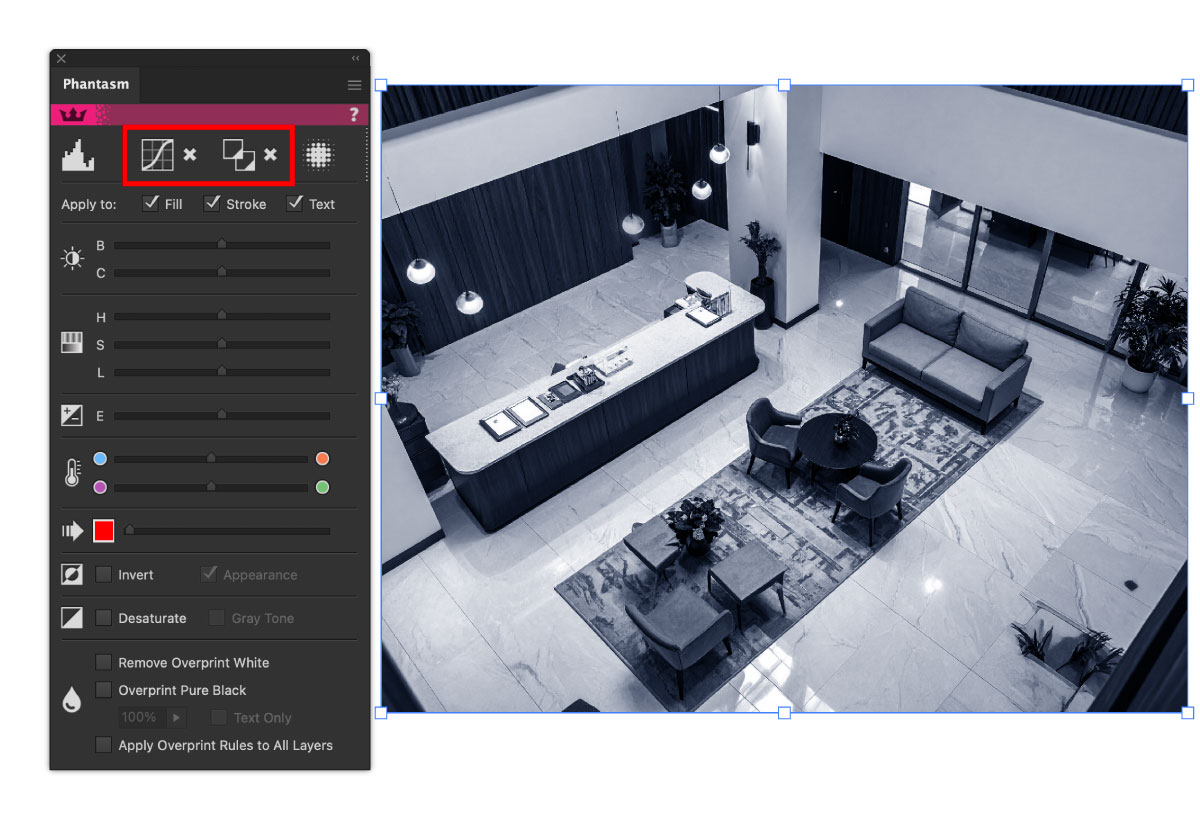 You can find out all about this live effect with the Phantasm Duotone documentation: https://docs.astutegraphics.com/phantasm/duotone
